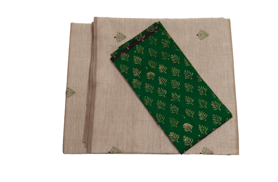 Beige Grey Colour Cotton Embroidery Saree with contrast blouse
