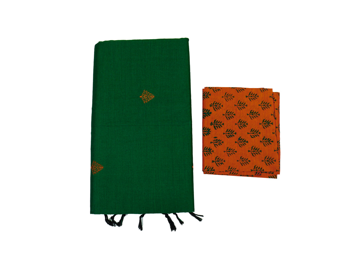 Lotus Green Colour Cotton Embroidery Saree with contrast blouse