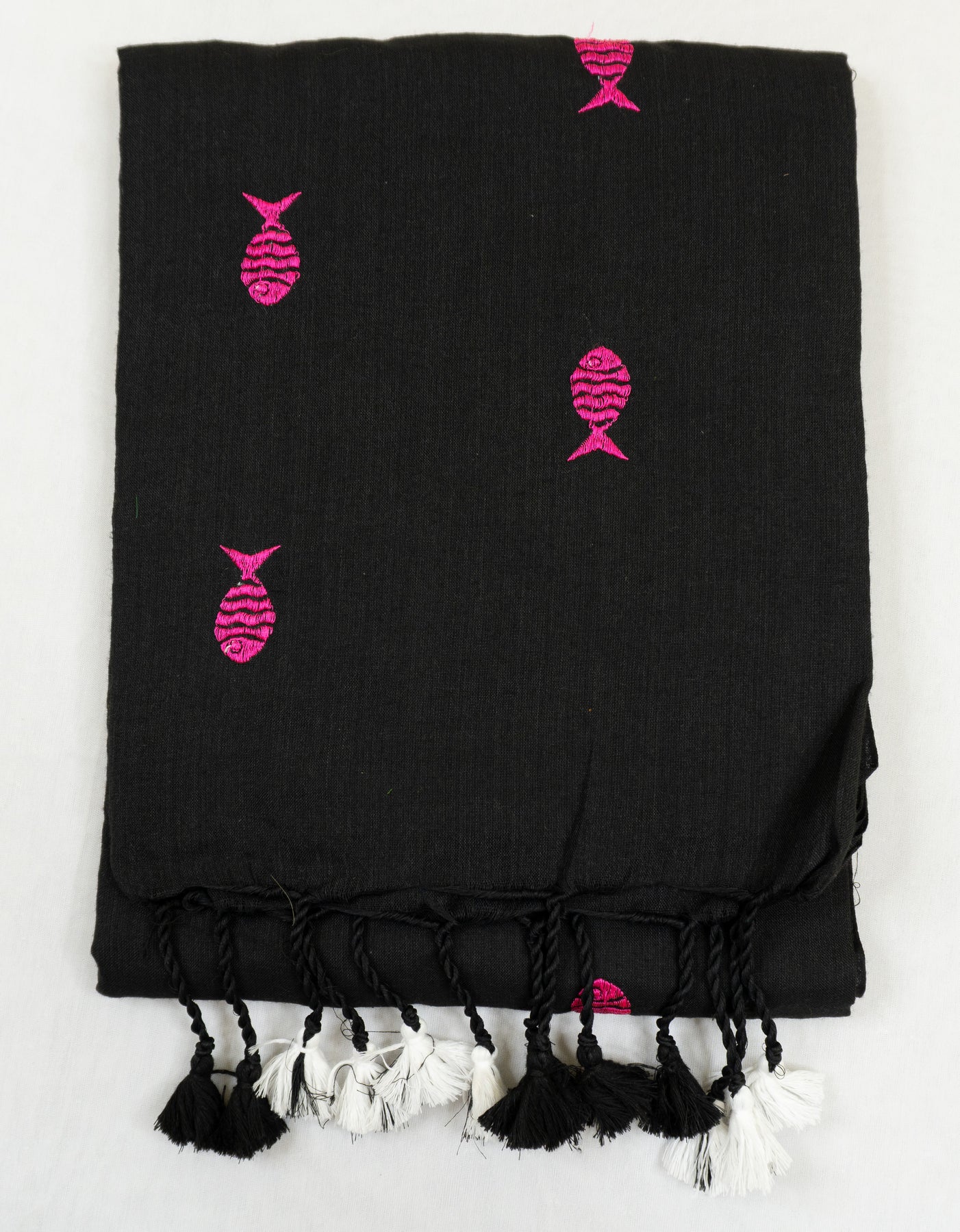 Black Color Kadhi Fish Embroidery Saree with running blouse