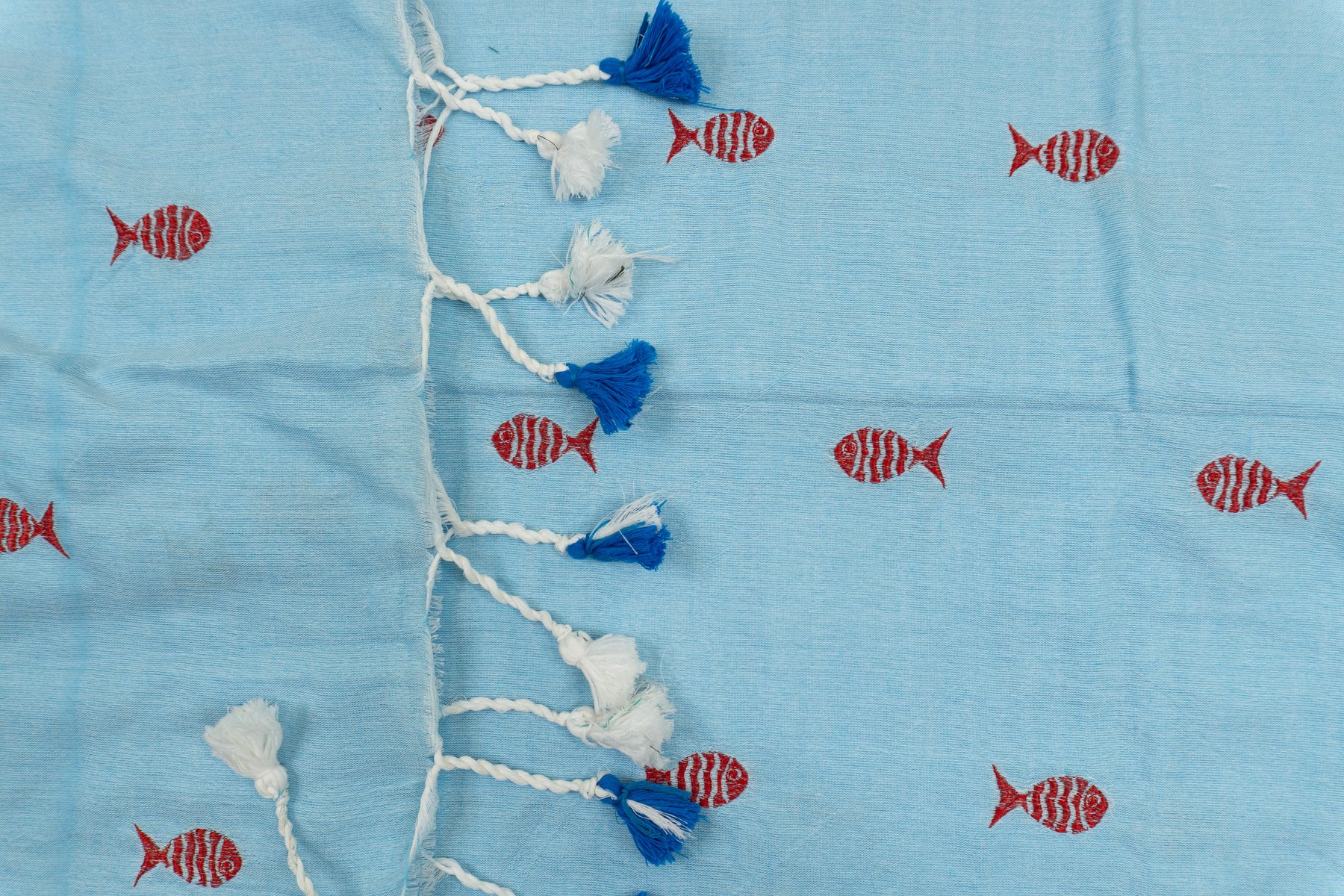 Sky Blue Color Kadhi Fish Embroidery Saree